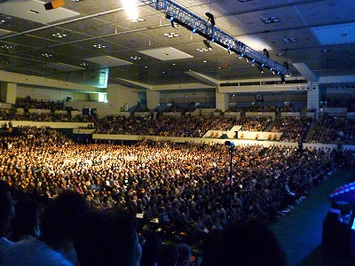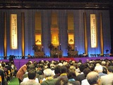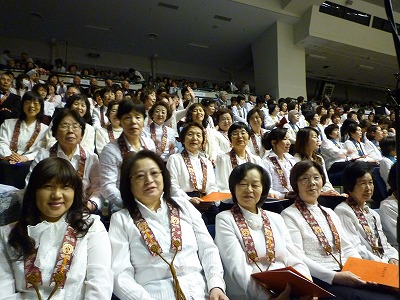 今朝は4時起きして、6時前には自宅を出た。 三重組コーラスの皆さんと、愛知県体育館で開催される「親鸞聖人750回遠忌法要東海教区お待ち受け法要」に参加した。 バスだけでも106台。遠くは岐阜高山から、三重伊賀上野からも集った。 音楽法要で勤まるので、コーラスだけでも700人近い人が集った。 当初組曲「正信偈」の馴染みのないメロディに心配されたが、関係者の努力で無事終了した。 写真でもお分かりのように人、人、人の熱気で溢れた。 大勢の力は感動を覚える。準備に奔走された皆さんは、今夜は安堵の念でいっぱいだろう。 午後は、作詞家の阿木耀子さんのトークと、八代亜紀さんの歌謡ショーであった。 ご門主様もご臨席の大会であった。 親鸞聖人750回遠忌法要のお待ち受け法要であるが、内容的には親鸞聖人とどういう関係があるのと、疑問を持った人も多いのではないだろうか? しかし関係者の努力の結果だから、何も言うまい。 いわば前夜祭のようなもんだから、これでいいのだろう。 しかし一番困ったのは、トイレに長蛇の列が出来たことと、帰りのバスが、106台も一斉に帰るので、乗車してからでも1時間以上動かなかったことに閉口した。 そのため今夜お参りを予定していた住職が、間に合わず、急遽長男に代わってもらった。息子達は、留守番をしながら、来月号の善正寺だよりの発送準備をしてくれた。とにかく大きな大会が無事終了して、全員にお疲れ様でしたとお礼が言いたい。 田んぼに水が入り、田植え真っ最中の忙しい中、参加して下さった方、本当にありがとう。大きな大会にコーラスの役割がいかに大きなものであるかが、実証されたことだろう。三重組コーラスも一つの役目を果たした。そして今、曲がり角に来ている。私自身、今後どのようにバトンタッチすればよいのか、思案の時機に来ていると言っていいだろう。(充子)