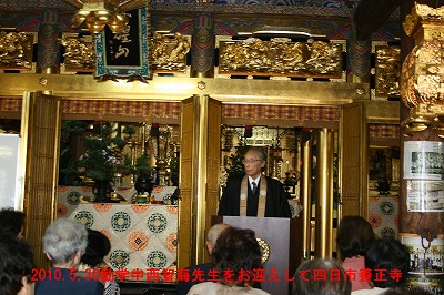 ☆5月30日午後,西本願寺勧学の中西智海先生をお迎えして、第32回公開法座が開かれた。 遠近各地から中西先生のファンが駆けつけて、本堂は聴聞の参拝客の熱気に溢れた。 先生から「人は何がなければ生きられないか?」という問いかけに 「衣食住が足りても、さほど満足感は感ぜず不足をいう。恵まれた環境にあってもそのありがたさ、感謝の心を知らない。しかし人は本当の教えに出会うと燃え立つような思いで生きる。本当の教えに出会うことが大切」と教えて戴いた。 また「命日とは、亡くなられた方が仏様となってお浄土に旅立つ日。 そしてもう一つ、この私がその方に手を合わさせていただく身になった新しい人生始まりの誕生日」とお示し下さった。 父親を亡くした放蕩息子が、通夜の席で大泣きに泣き、手を合わせた。今まで親に反抗して生きてきた人間が、親が仏となって息子を手を合わす身にさせていただいた。それが新しい自分の人生の誕生日でもあったという、エピソードで分かりやすく説かれた。 中西先生の口調は、厳しい中にも、心の底にズシンと落ちるものがある。 この後味は何だろう? 笑いを取る話でもない。 しかしなぜか私の生きる指針を、はっきりお示し下さった喜びが残る一日だった。 |