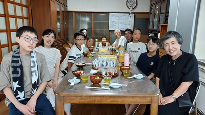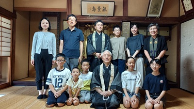 酷暑の夏が続きます。如何お過ごしですか? 私はエアコンの効いた部屋から出られずに、運動不足の毎日です。 どうか皆様も熱中症には、くれぐれもお気を付け下さい。 8月には本堂で「初盆法要」をお勤めされる家が何軒もありました。 エアコンが二台本堂に設置されているとは言え、冷気が抜けて行く所が多いので、全て開け広げて、扇風機とエコキュートとエアコンをフル回転させて、参詣者をお迎えしました。 私と若坊守はそのお宅の接待係を勤めます。 アイスコーヒー、冷茶、茶菓子、テーブル、椅子、お経本、などを用意してお手伝い。 こうすることで、葬儀にはごく少数しか集まらなかった親類縁者が、遠方の小さいお子様も連れて本堂は賑わいます。 微力ですが、お寺の新しい付加価値ではないかと思います。 今後本堂を利用されるお宅が益々増えて、私達寺族は大忙しです。 これが自分に課せられた仕事と受け止めて、誠意を込めておもてなしをいたします。 また今年の盂蘭盆会法要には、大勢の参詣者にお参り頂き有難うございました。我が家の内孫、外孫、勢ぞろいして、久しぶりに家族一同賑やかなお盆を過ごしました。 |