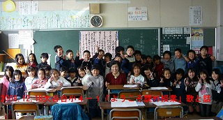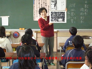 ≪ホットニュース≫ ☆12/18(木)地元の大谷台小学校4年1組のチャレンジ学習の講師に坊守が招かれました。 40名近い生徒の約半数が鐘撞きにきたり、境内で遊ぶ顔馴染みの子供達。クイズ、除夜の鐘のお話、昭和の子供の写真(土門拳著)を見せて現代っ子の遊びとの比較、最後は手話ソング「友達になるために」を坊守のギター伴奏で身振りを交えて、元気よく歌いました。 短い時間でしたが、お寺の建物を離れて、地域の子供達との交流が生まれた楽しいひとときでした。