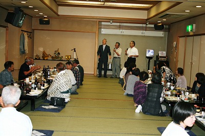 宴会は5時から始ったが、その前に温泉につかったり、おしゃべりに花が咲いた。 宴会ではカラオケのオンパレード。 みんな亮爾の誕生をご縁に集って下さった心優しい方々、 これからも私達同様に、若い世代にも応援していただきたいとお願いしtrお開きとなった。 |
