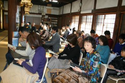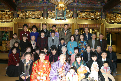 今年も賑やかに元旦会が勤まりました。 帰省中の息子さん家族を連れた故郷の両親。 子供たちは正月くらい実家でゆっくりしただろうに、長年の習慣として家族そろっ新年のスタートをお寺へ参拝することから始められます。 ご両親の一本筋の通った教育方針が伺われます。 子供を甘やかす親は多いが、子や孫に大事なことをきちんと伝える努力をする親が少なくなってきました。 苦難を乗り越えた老親が、将来子供たちがどんな苦難や障害に出遭っても乗り越えられるように、円満な人格形成の中心に、仏法を拠り所とする生活をしてほしいものです。 そのきっかけとなるのが、家族そろって元旦にお寺に参拝すること。 私達もお手本にしましょう。 |