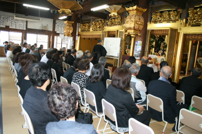 平成27年度の小杉町追悼法要が、9月20日善正寺で勤まりました。 小杉仏教会(自治会)、長寿会、三全仏教婦人会、3団体合同の追悼法要。午前は9名の年間物故者対象、午後は37名の戦没者対象。 各団体の組長さん、班長さんら、役員の方々が焼香されました。 初めてお寺の本堂にお参りする人も多く、お寺デビューの機会となりました。 ご法話の講師は、広島県より朝枝暁範先生を初めてお迎えしました。「咲いた花見て喜ぶ前に、咲かせた根っこのご恩を知れ」と、『追悼法要の意味」をはっきりご教示下さいました。 「この命は自分一人のものではない、次につなげていく大事ないのち」と、生きるための大きな仕事を教えて頂きました。 寺の主導ではなく、地域団体との協同の法要。 新しい土徳を築く貴重な一日となりました。 |